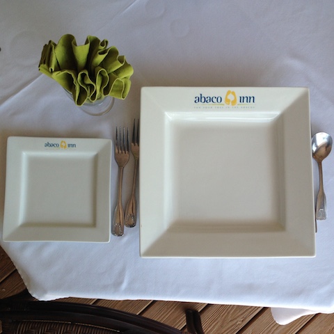 Tom Hazel at the Abaco Inn rocks. These show what a restaurant can do to spruce up their otherwise boring whites. A nice name and logo. Make your customers remember where they are as they are enjoying your awesome food.