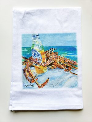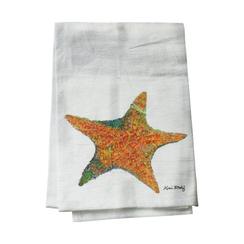 Yummy 100% premium cotton tea towel with Kim’s sealife! Measures 27″ square UNFOLDED.