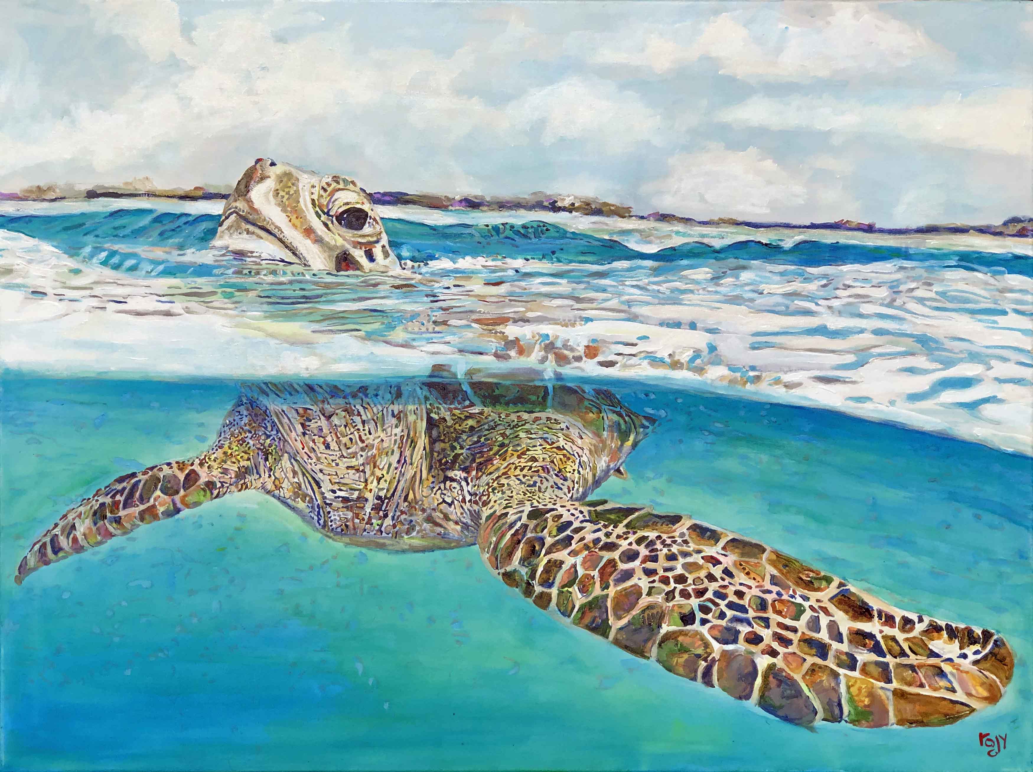Came across this on facebook and asked the poster for permission to paint. This little guy is riding the swell while he sneaks in a breath of fresh air