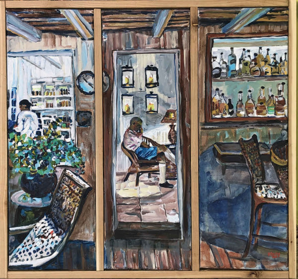 I wasn’t going to make prints, but a persistent MOW couple asked Tom if I could reproduce it for them, which he agreed to.  I brought the pieces back to the States and had them photographed and printed, and Mark made another triptych frame for them.  It’s available as a framed reproduction if you are interested.