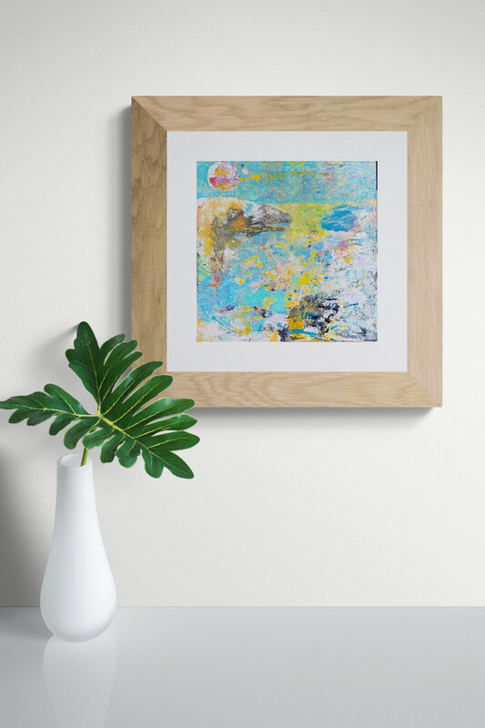 What began as a workboard for cleaning brushes and pressing leftover paint evolved—entirely by accident—into a vivid, abstract portrait of Tiloo Cut, the narrow turquoise passage between Elbow Cay and Tiloo Cay in the Abacos. No deliberate brushstroke was made; the image emerged from layers of wiped color, dried palettes, and chance impressions.